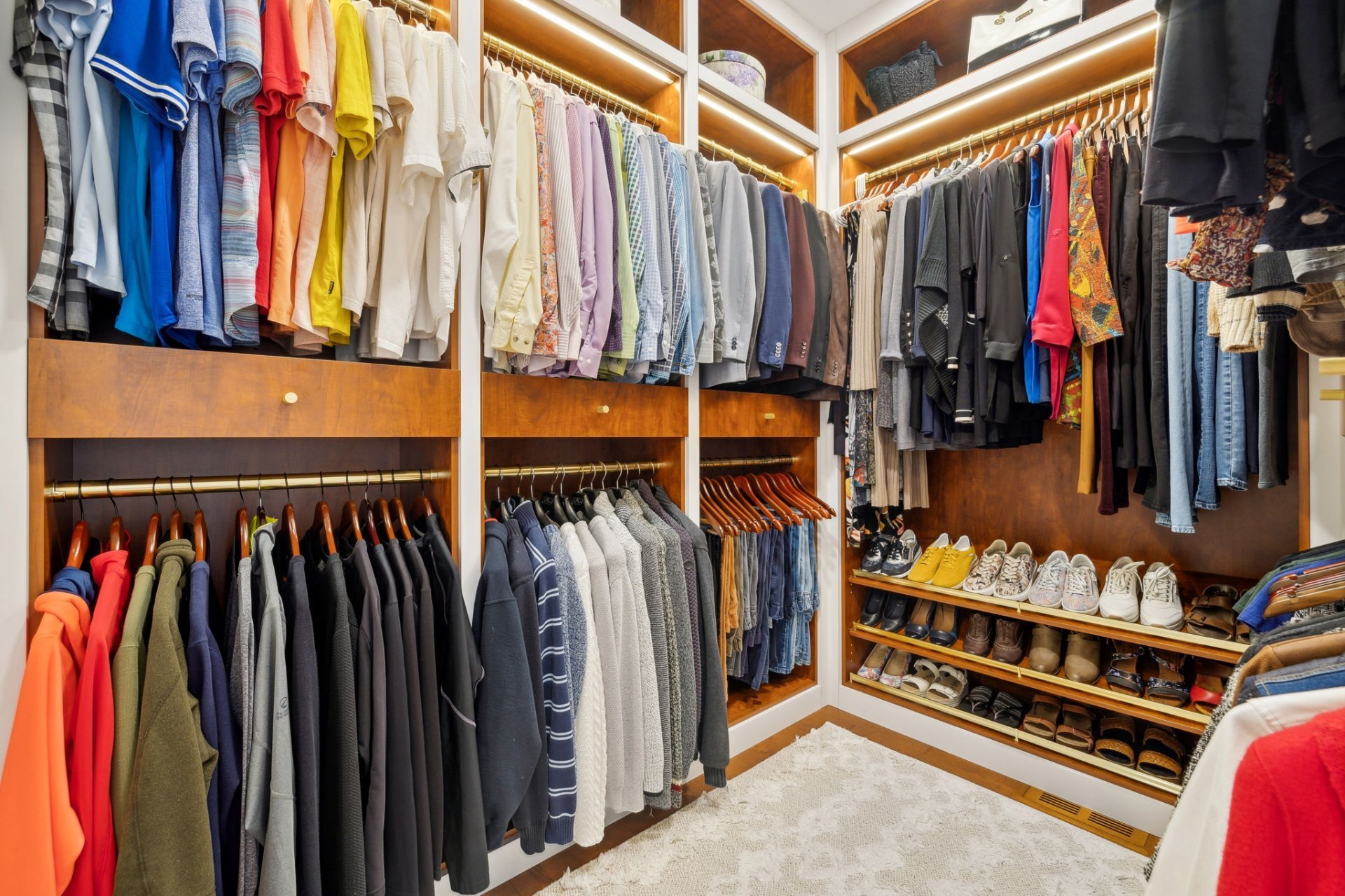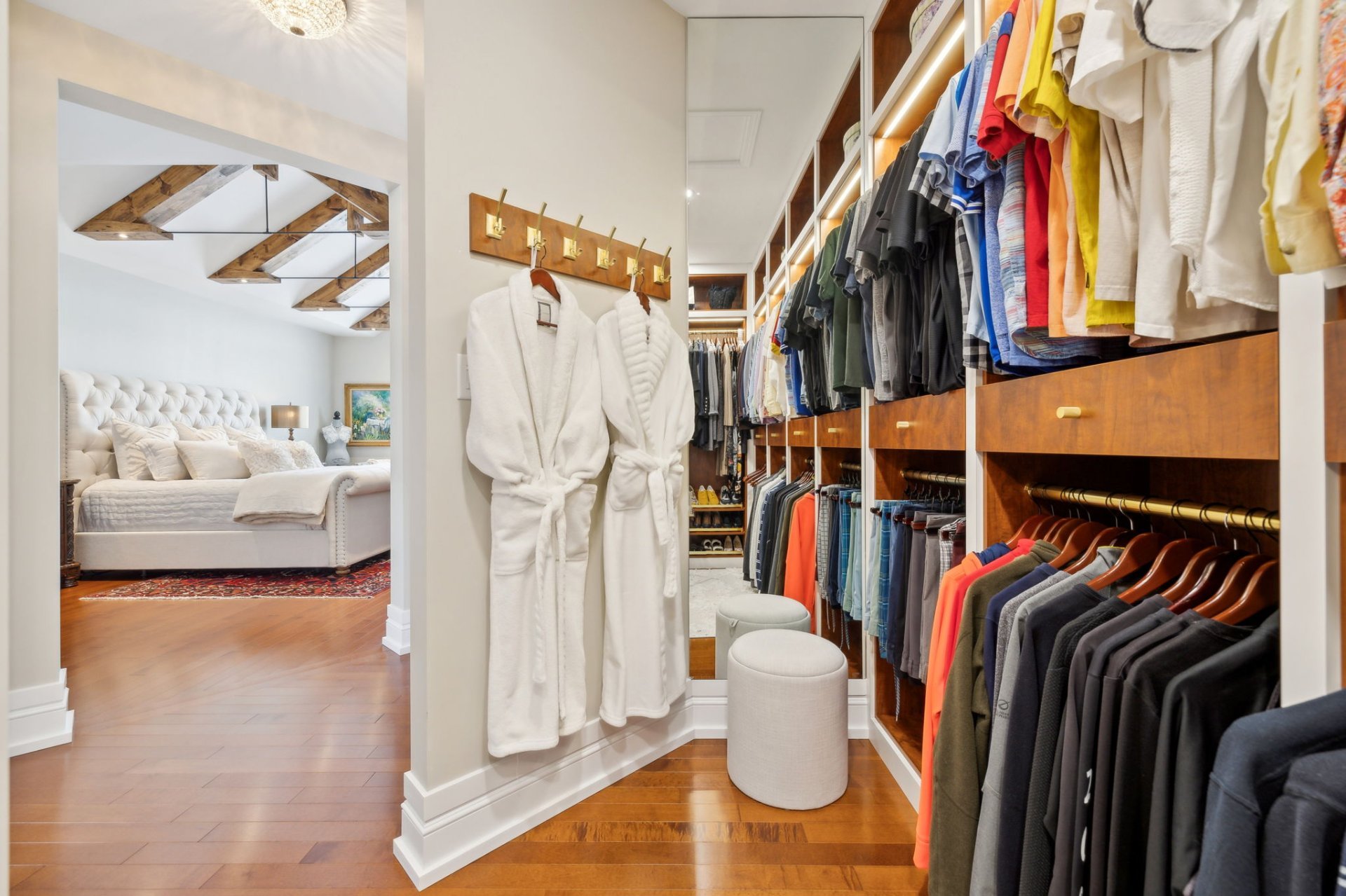 | + Large walk-in closet with built-in furniture and light |