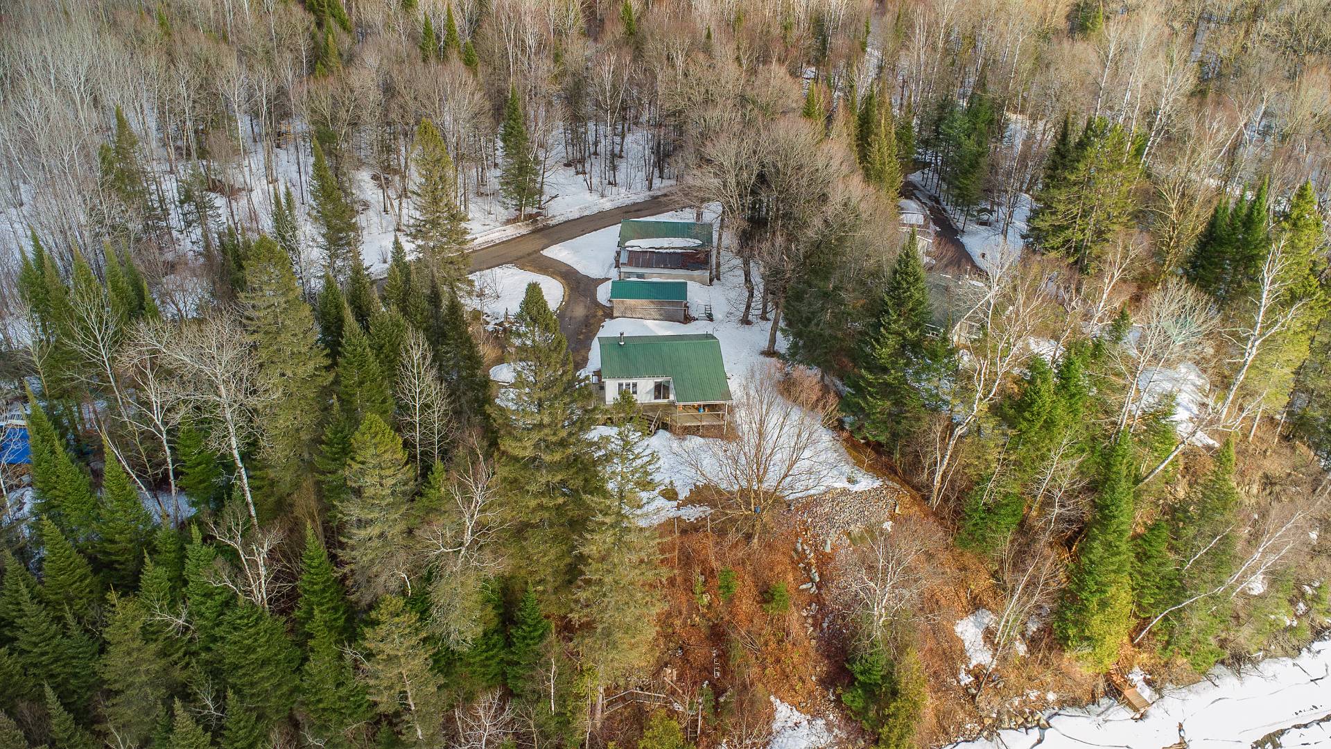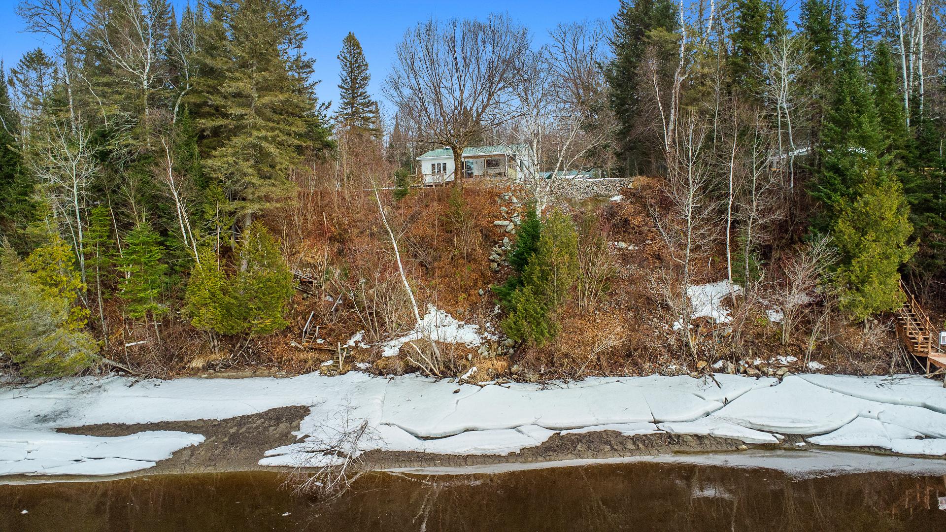 1 bedroom | 1 bathroom | garage. Lot of over half an acre. Charming single-storey, four-season waterfront cottage located in the heart of nature in the Laurentians. Electric heating and a wood-burning stove in the living room, as well as another one in the garage. Large windows offer beautiful natural light and views of the blue water. A large garage with a workshop and several sheds provide additional space. Direct access to the river with motorized boating permitted, ideal for swimming, canoeing, or simply enjoying the scenery. A great opportunity not to be missed for those seeking peace and outdoor living.