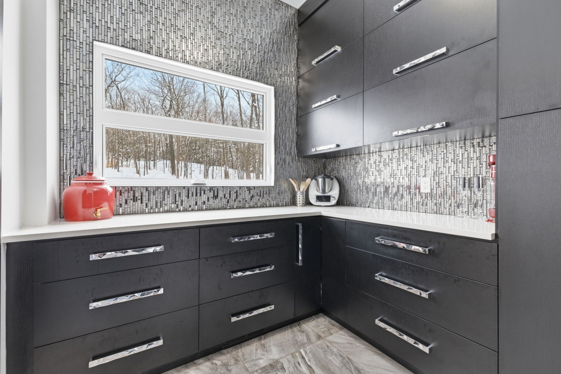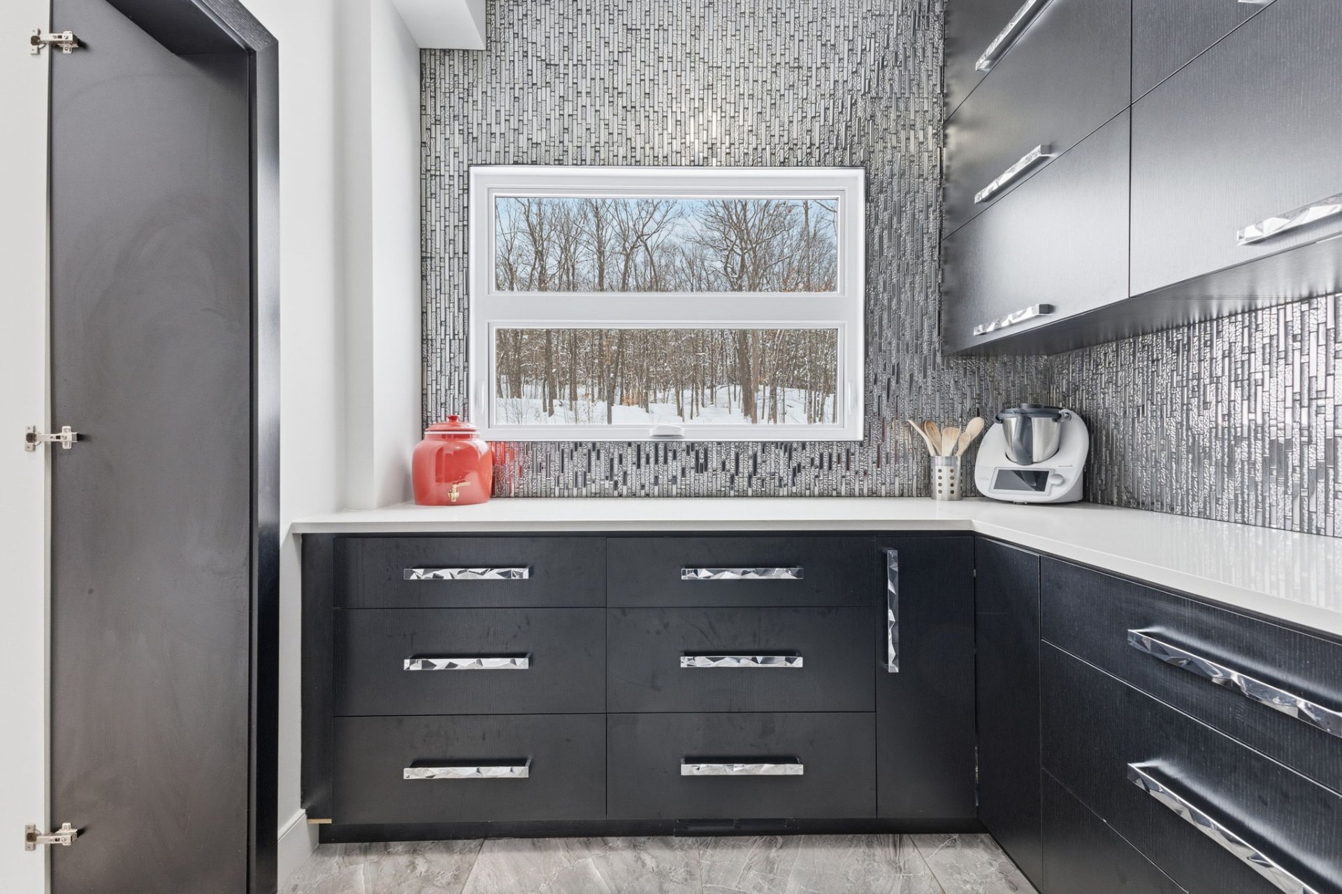 | kitchen stands out with its refined and functional design, |