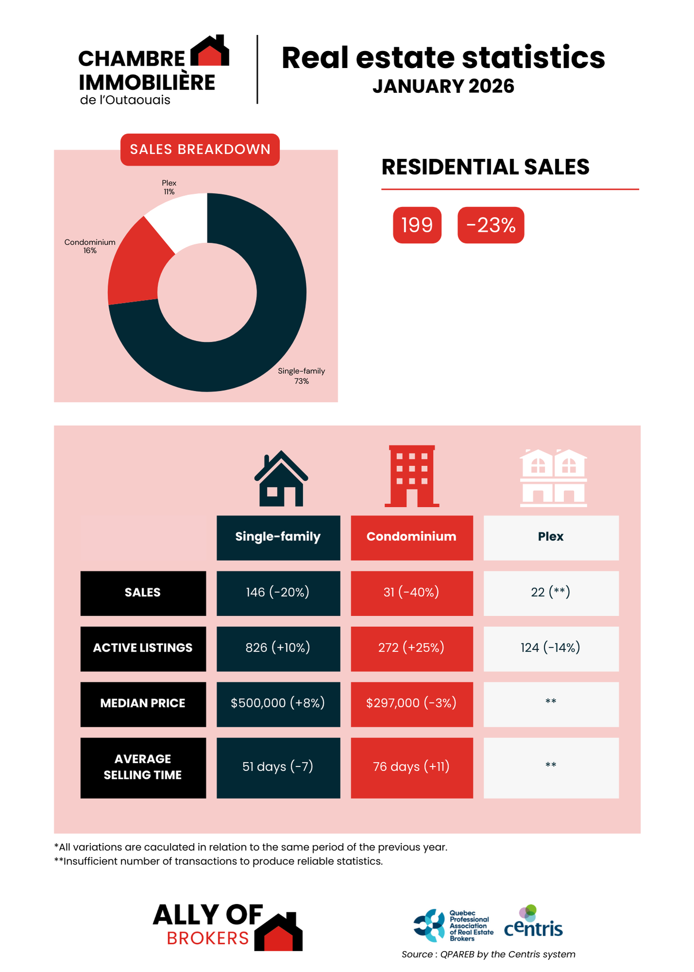 “The Outaouais real estate market is still feeling the effects of the last few months of 2025, but recent indicators are encouraging. The climate of uncertainty that marked the end of the year seems to be gradually dissipating, and we are already seeing a healthier repositioning of the market,” explains Roch St-Jacques, Chairman of the Board of Directors of la Chambre immobilière de l'Outaouais, Roch St-Jacques.